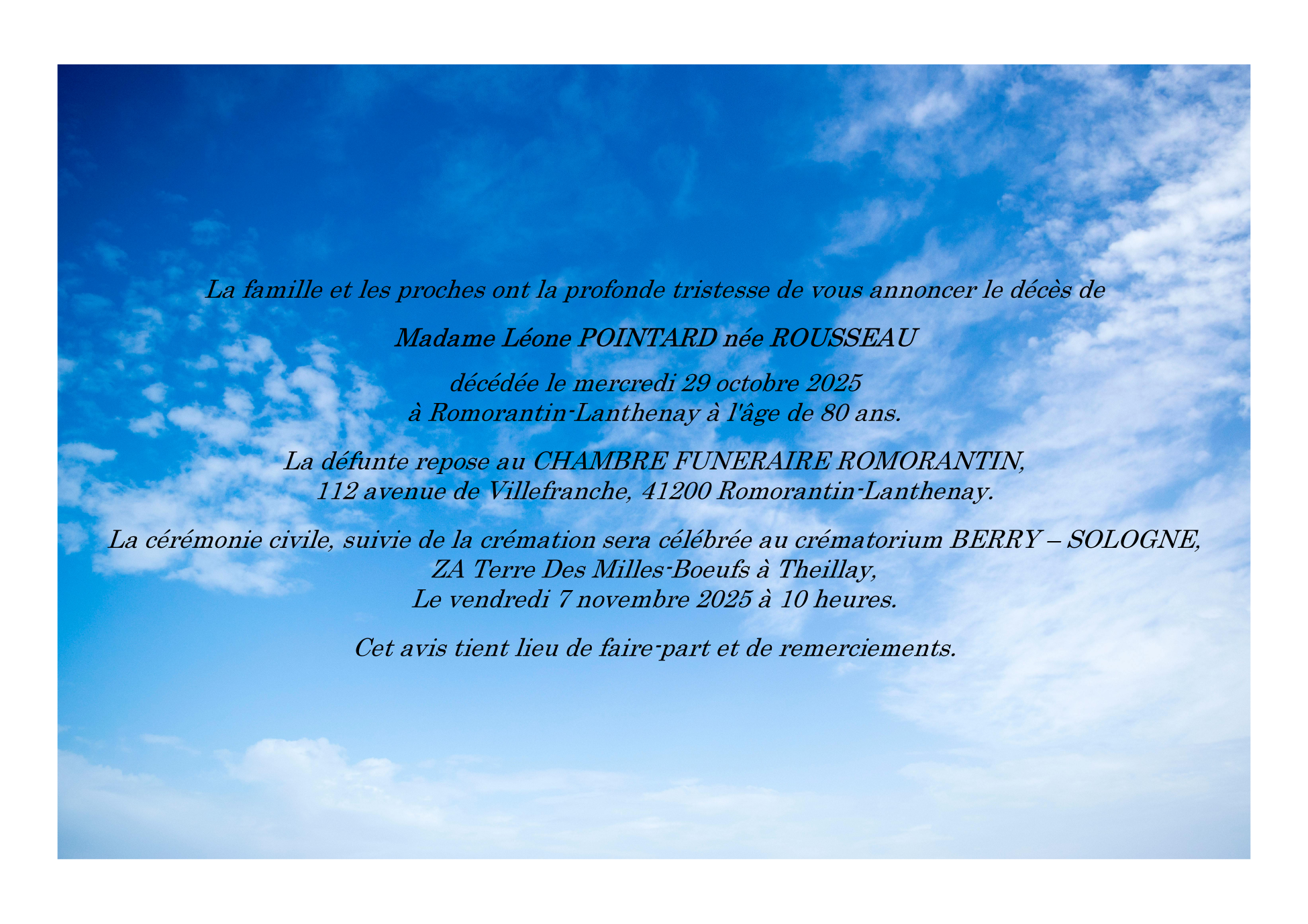 Décédée à Romorantin-Lanthenay (41200, France) le mercredi 29 octobre 2025 à l'âge de 80 ans
