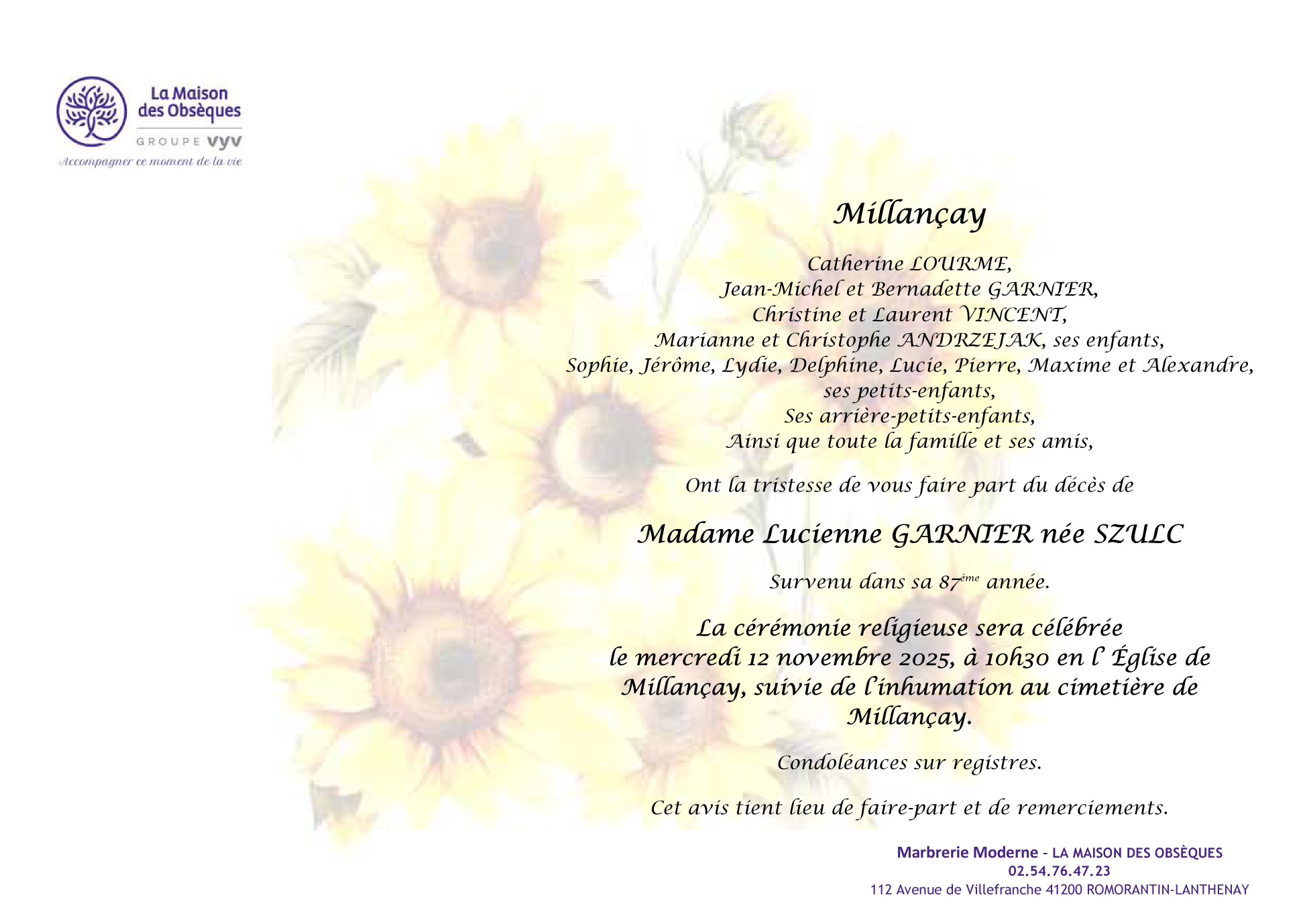 Décédée à Neung-sur-Beuvron (41210, France) le mercredi 5 novembre 2025 à l'âge de 86 ans