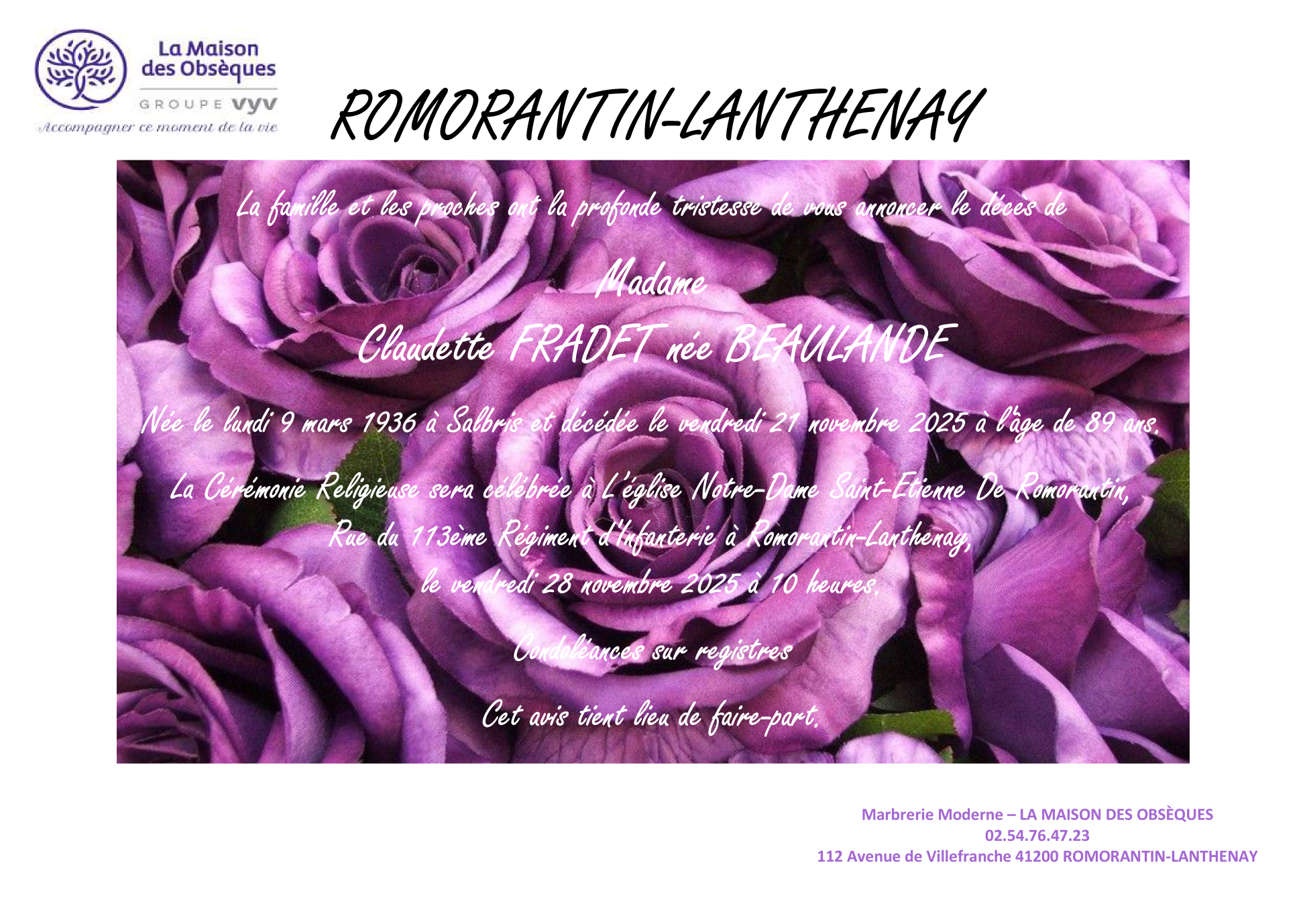 Annonce nécrologique