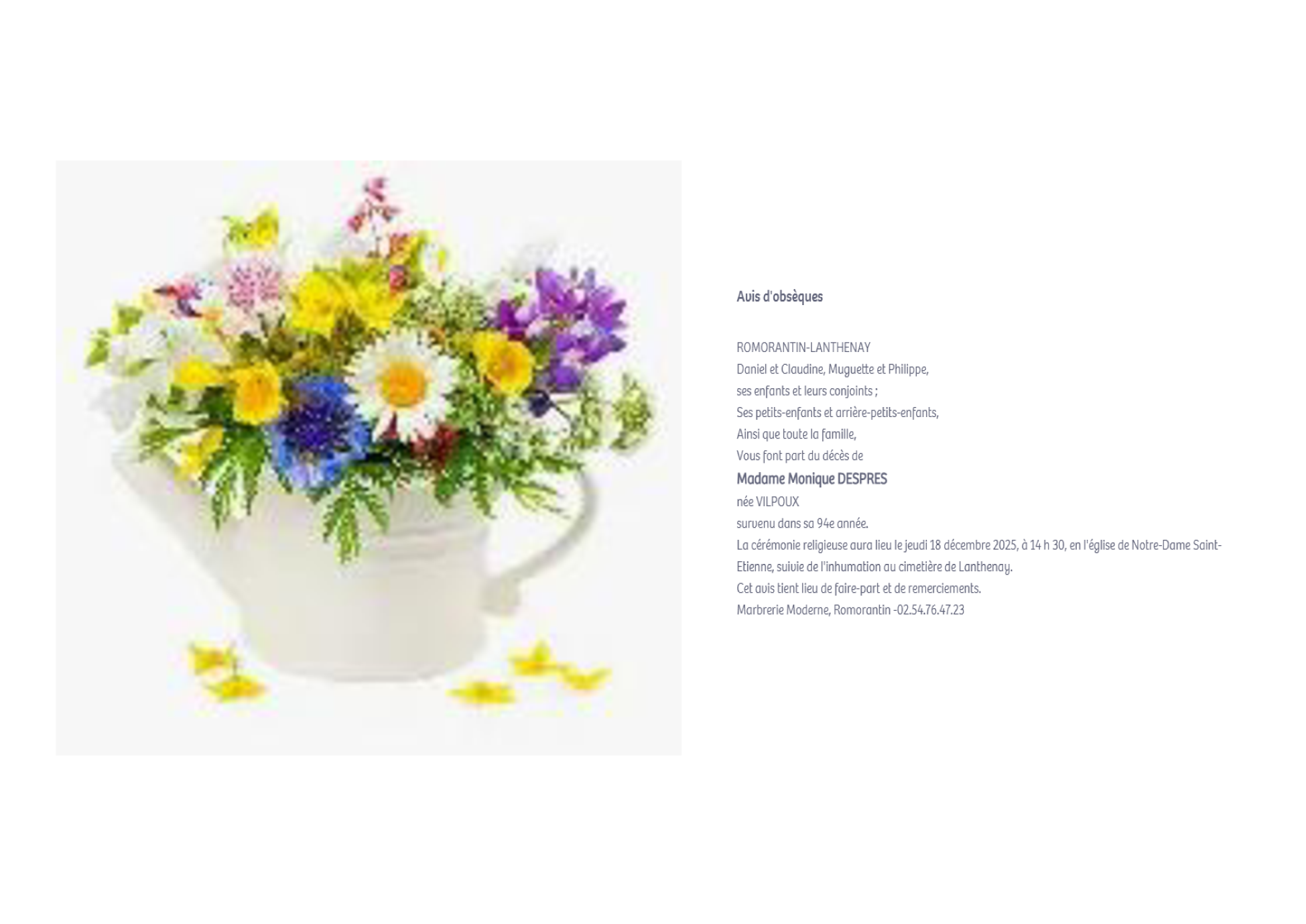 Décédée à Romorantin-Lanthenay (41200, France) le dimanche 14 décembre 2025 à l'âge de 93 ans