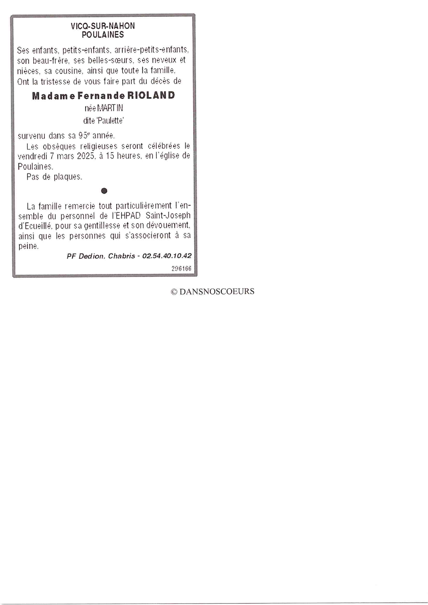 Madame Fernande RIOLAND née MARTIN