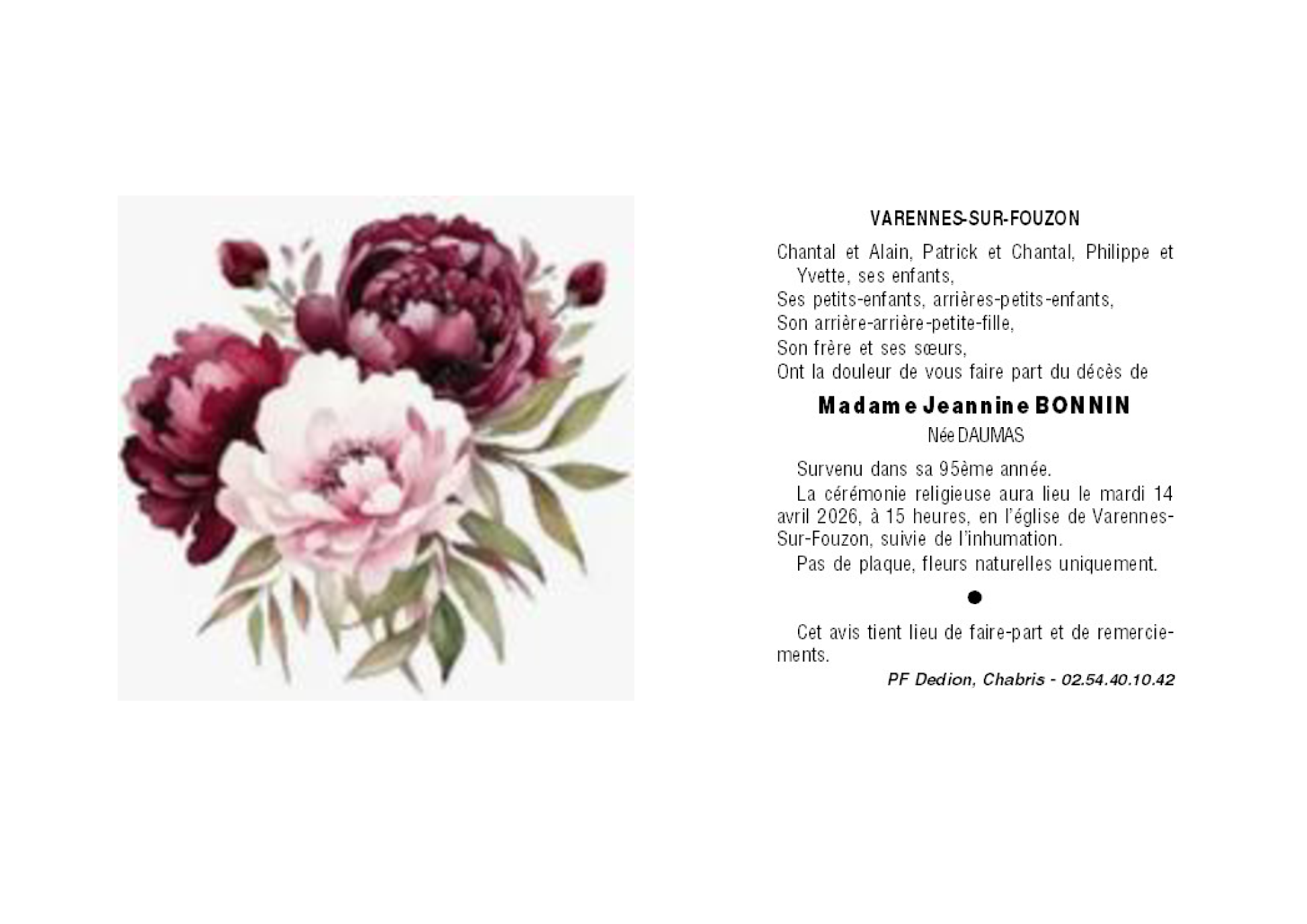 Décédée à Varennes sur Fouzon (36210, France) le lundi 6 avril 2026 à l'âge de 94 ans